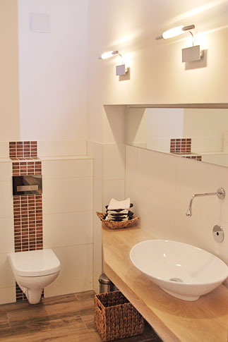 Das Badezimmer mit Dusche und WC sowie ein Extra WC sind freundlich, modern eingerichtet.
