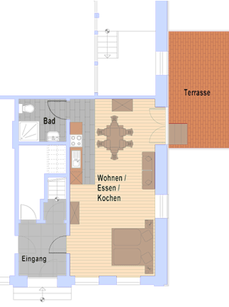 Direkt von der Wohnung haben Sie Zugang auf Ihre eigene Terasse.